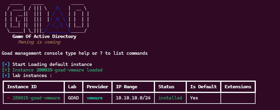 GOAD/vmware/local/192.168.56.X > set_lab <lab>
