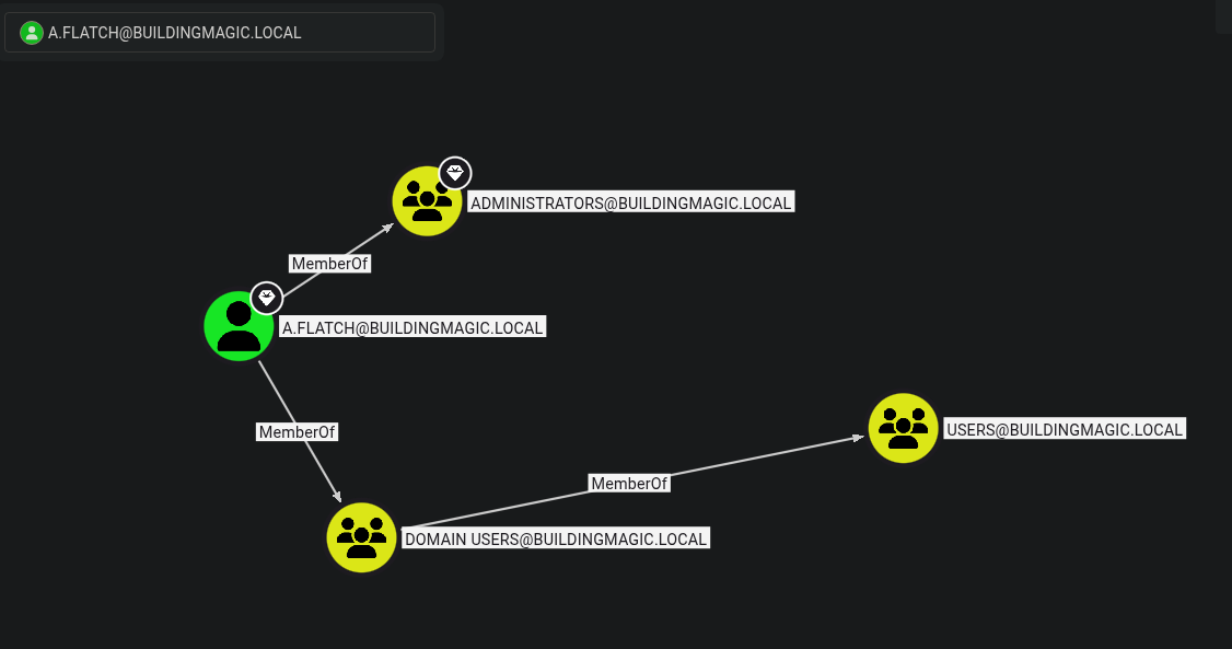 So I went back to Bloodhound and found out that a.flatch is also part of the administrators group